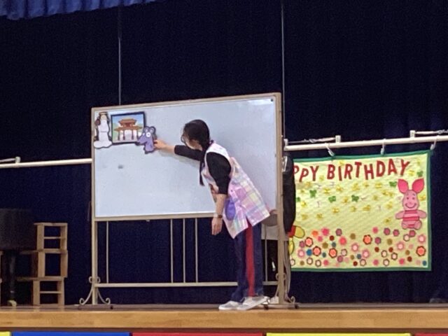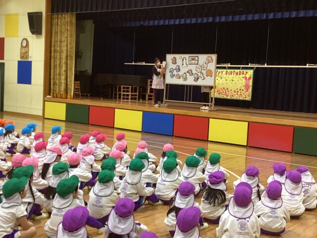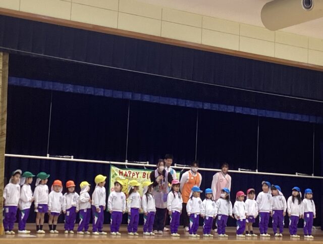 インタビューの後は、先生や友だちから「ハッピーバースデー」のお歌のプレゼントです♪