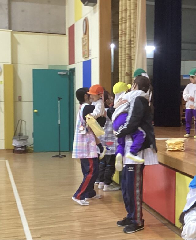 次は、先生たちから誕生日のプレゼントをもらい、大好きな先生からの抱っこタイム☺️