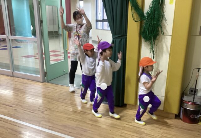 おともだちに見守られ、元気いっぱいに入場します☺️