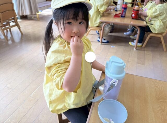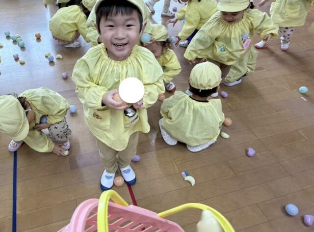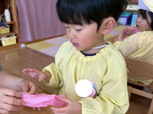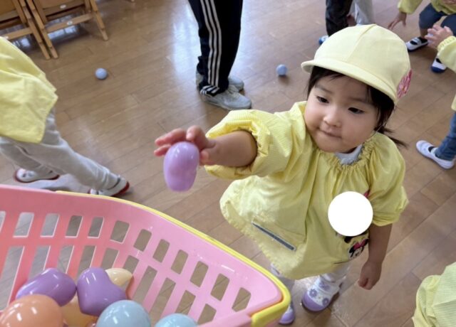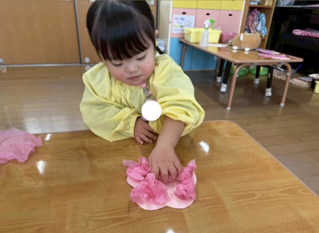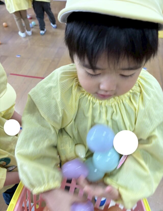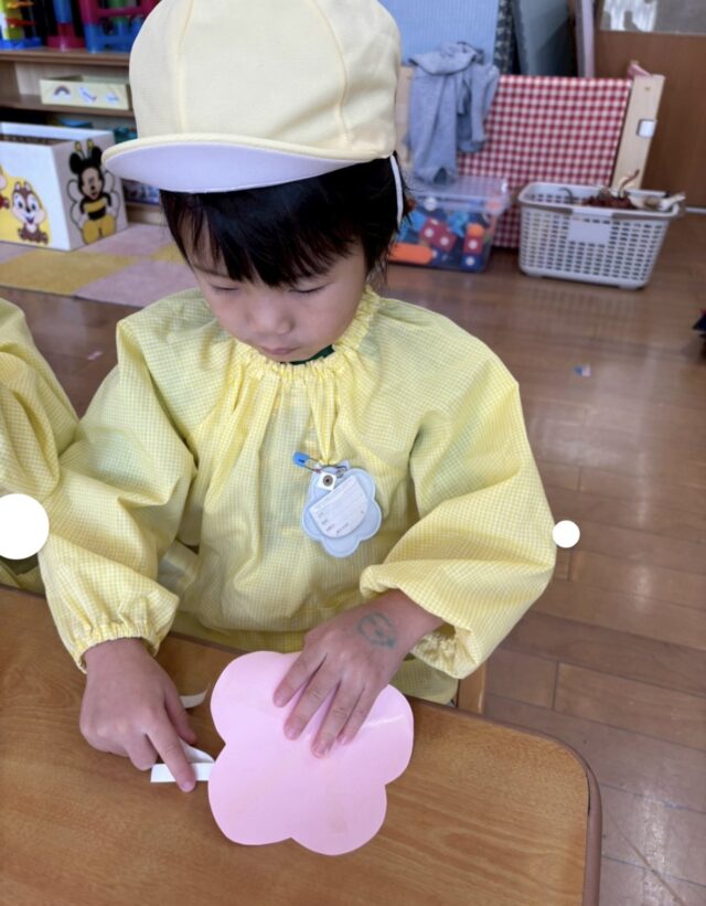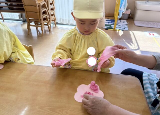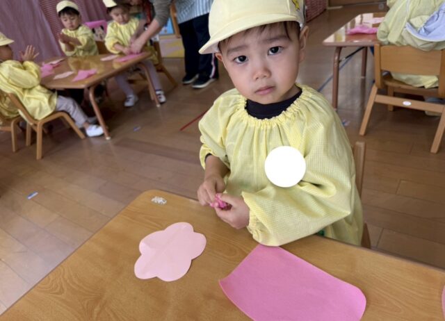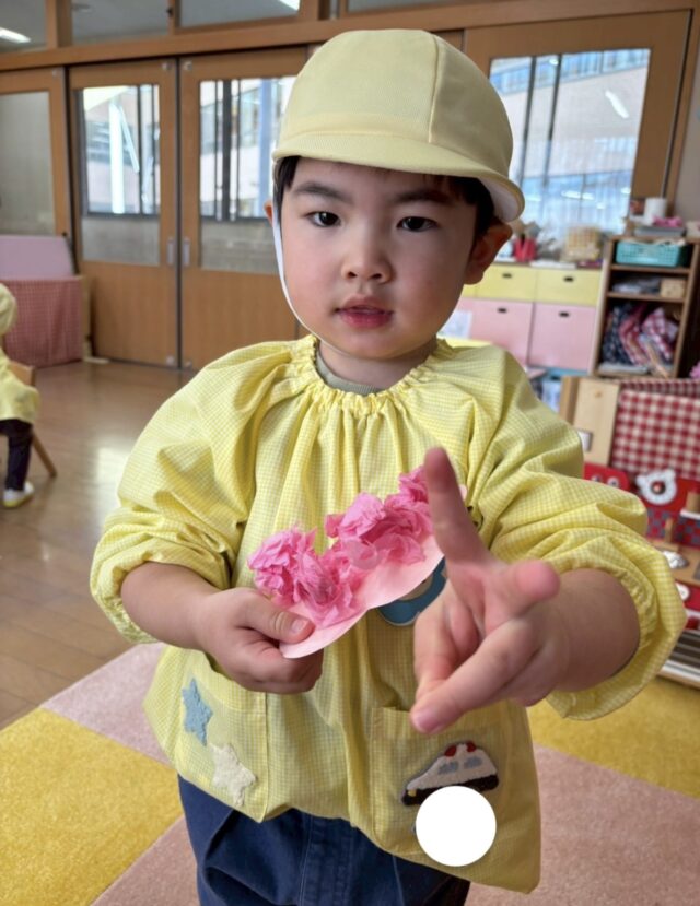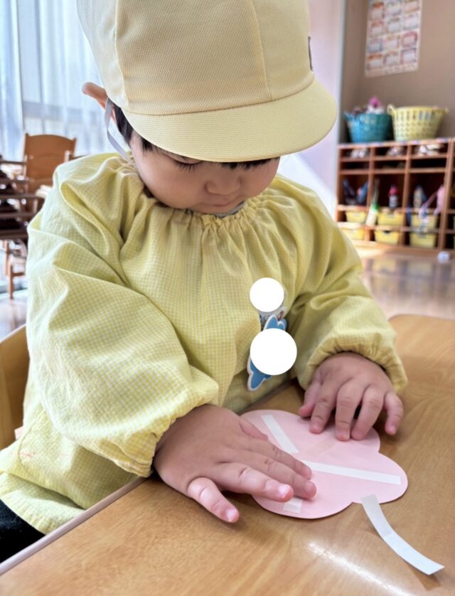 火曜・水曜コースは桃の花の製作、どんぐりコースはボール遊びをしました🎶