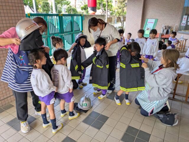 年長組は、消防服を着て写真撮影もしましたよ😊