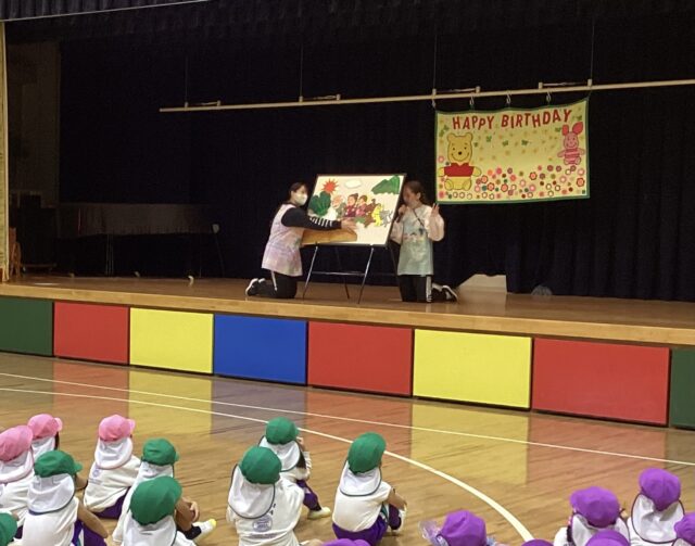 インタビューの後は、先生や友だちから「ハッピーバースデー」のお歌のプレゼントです🎶