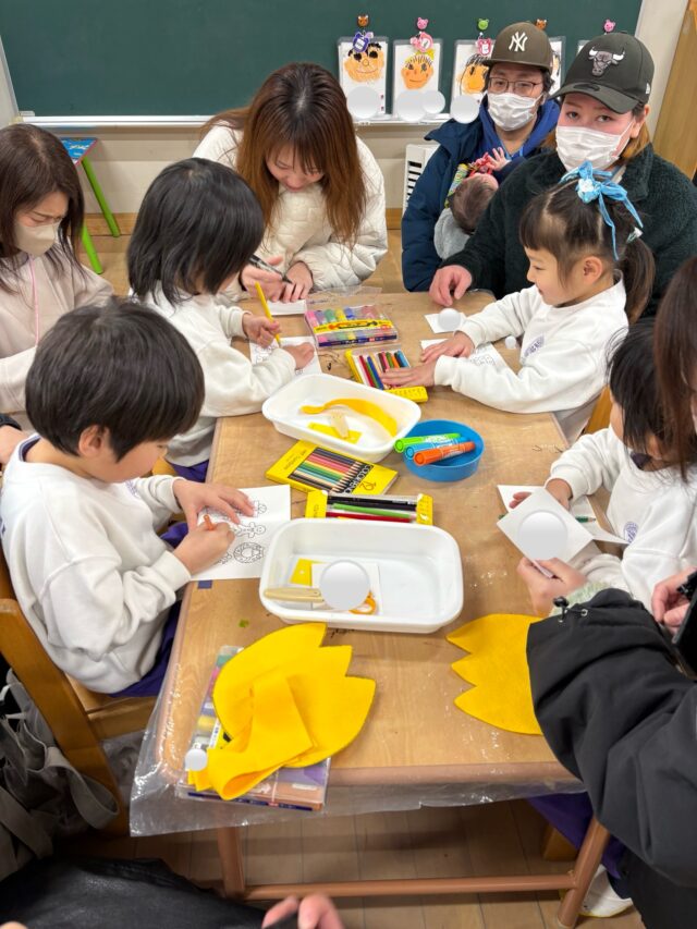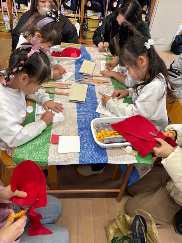 ハサミ✂️を使ってフエルトを切ったり、色鉛筆で色塗りをしたりと製作を楽しみました😊