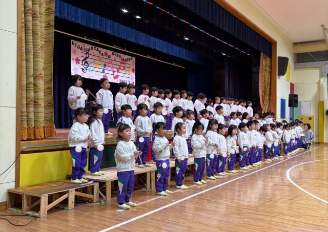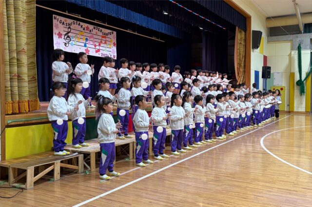 年中組は、トライアングル・鈴・カスタネット・タンブリンを使っての合奏です🎶