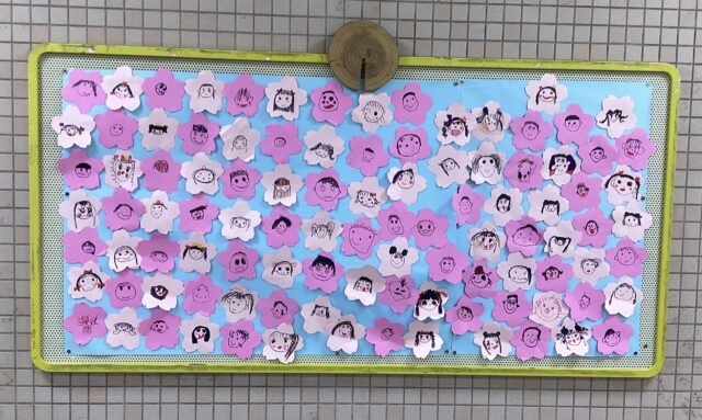 玄関の壁面は、年長組の作品です🎶