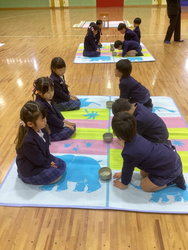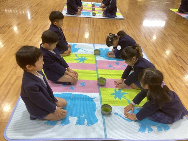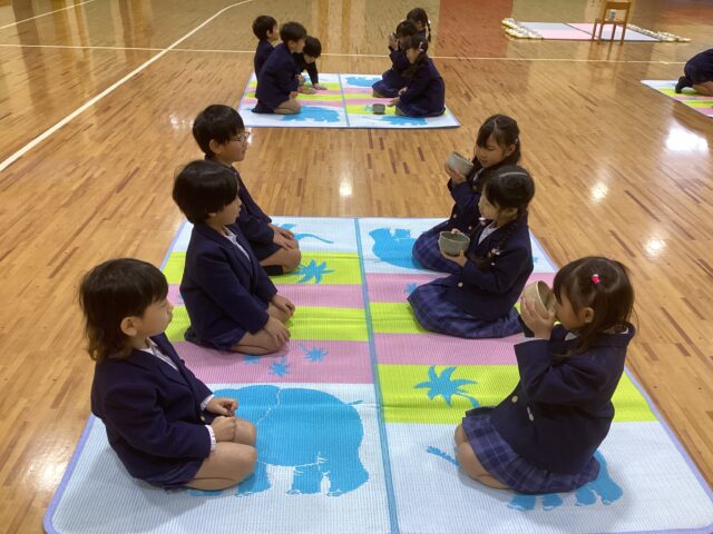 先生からお抹茶を受け取り、そっ~と慎重に運ぶのですが、お茶碗の持ち方も上手になりました👏