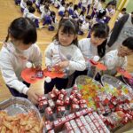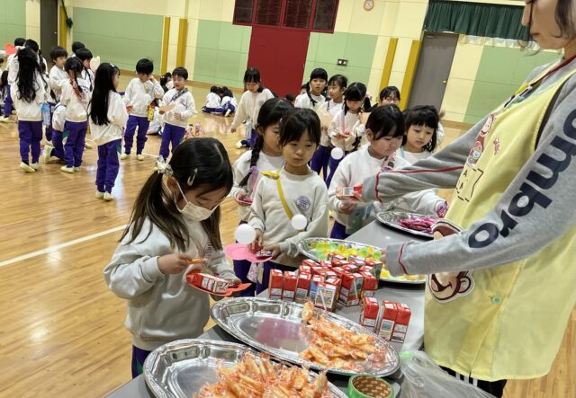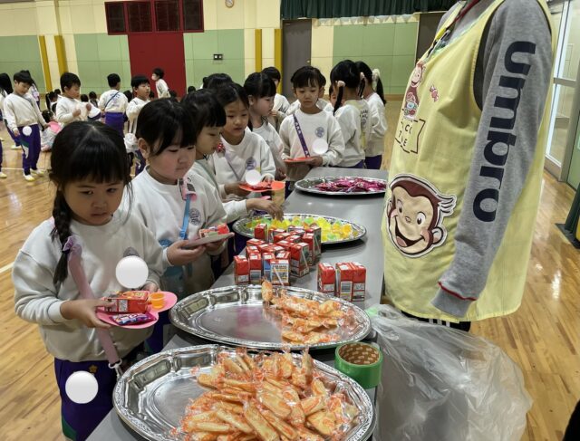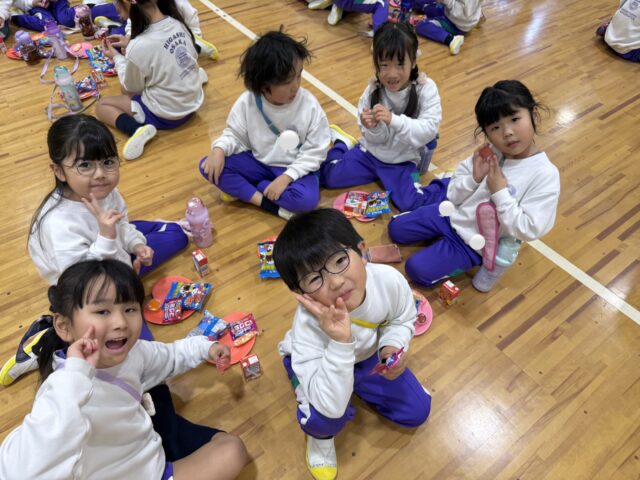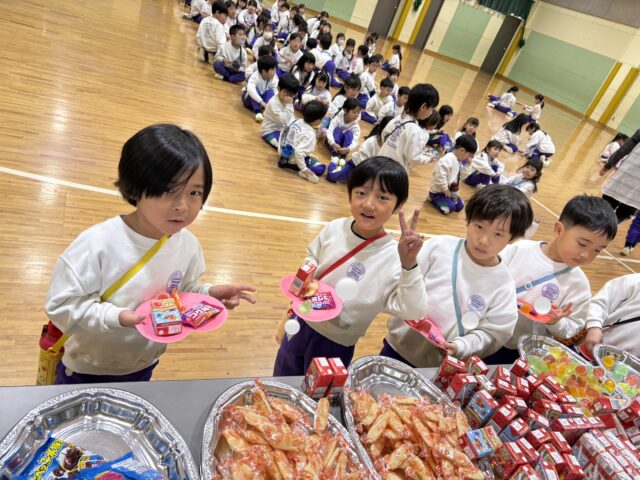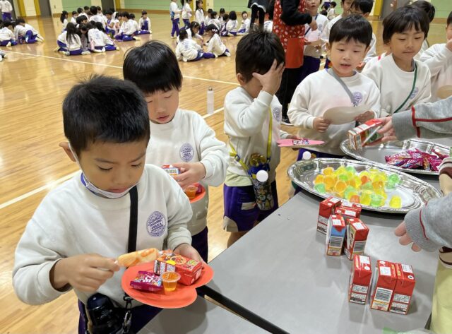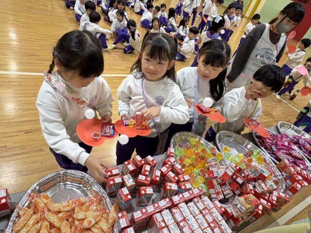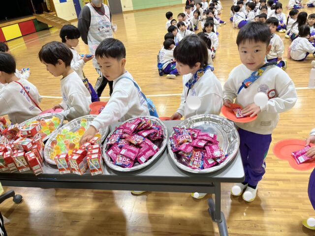 お菓子を選んだら、一緒に食べたいお友だちと座り、楽しくお話しながらお菓子タイム🍘