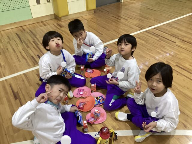 3月16日 年長組が″1年間よく頑張りました✨″と、お菓子バイキングパーティーをしました🎉