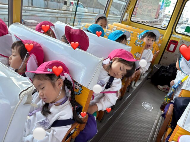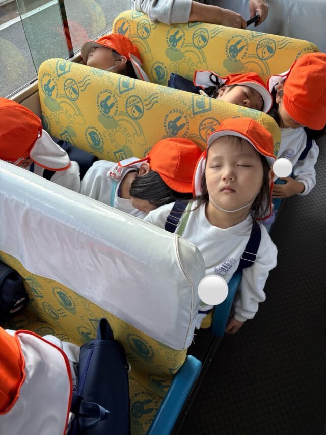 帰りのバスは疲れてスヤスヤ眠る姿が見られました💤